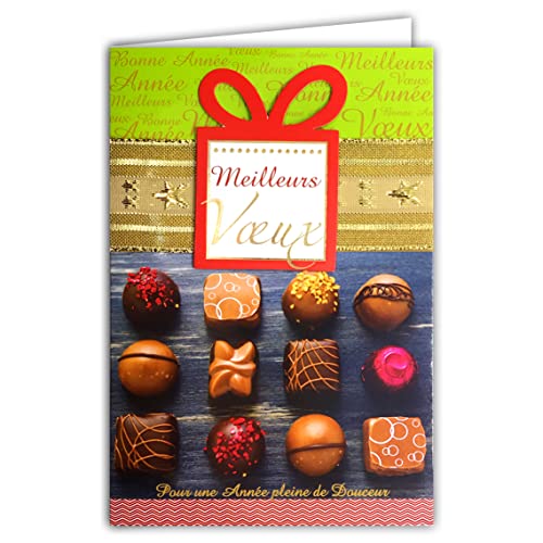 Bästa gratulationskort gott nytt år full av delikatesser guldband med kuvert kollage präglad pappersgåva julchoklad underbara önskningar afton 61-4087-A BA