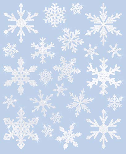 AVERY Zweckform 23 fönsterbilder jul snöflingor (tillverkade i Tyskland, självhäftande fönsterklistermärken, juldekoration fönster, avtagbara fönsterfilm, glittrande) 1 ark/23 fönsterklistermärken, 52298