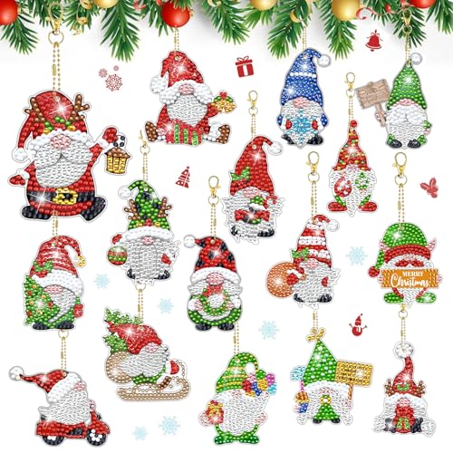 Lymshine Diamantmålning, julhänge, 16 stycken diamantmålning, nyckelknippor, jul, dubbelsidig, 5D gör-det-själv nyckelringsset för juldekoration och fönster