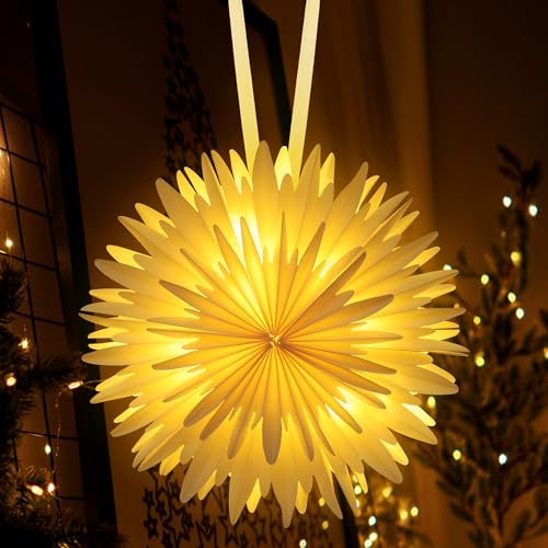 Kssvzz 45 cm julstjärna, 3D-pappersstjärna att hänga upp med belysning, juldekoration fönster inomhus