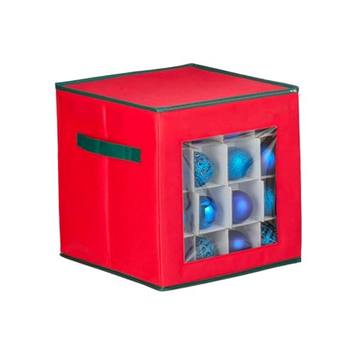 Wintem Förvaringsbox för 64 julgranskulor i TNT 30 x 30 x 30 cm med genomskinligt fönster framtill, modulära fack och robust dragkedja för juldekoration, lätt att förvara och bära