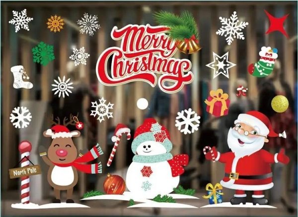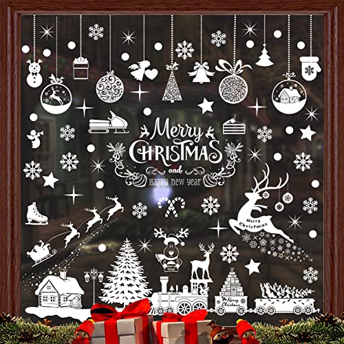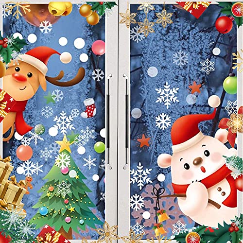 Julklistermärken för fönster, jul väggklistermärke, 220 st snöflinga klistermärken jul, jultomten snögubbe älg dörr ornament juldekoration ljusstatiska fönster