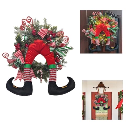 Topyond julkrans, Grinch jul dörrkrans med girland, festlig dörrdekor för ytterdörr och fönster, unik juldekoration för helgjubel
