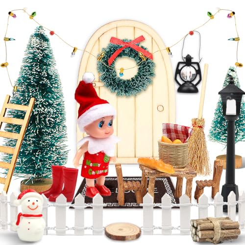 DANXIAN 24 stycken tomtedörrstillbehör julset, miniatyr tomte tillbehör jul, fönster, staket, julgran, matta, lykta, postfack, krans, stövlar, fedörr, dansk juldekoration