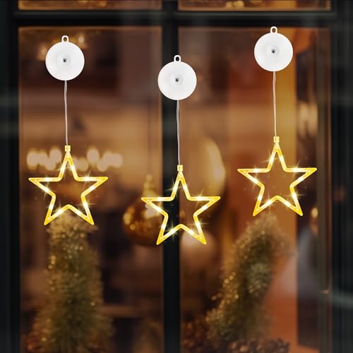 sylvwin LED-stjärnor, juldekoration, fönster, 3 stycken, 10 lysdioder, juldekoration inomhus med timer, varmvit ljuskedja stjärnor för fönster, dekoration, juldekoration, balkong, fest, bröllop