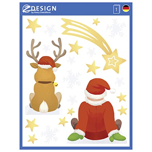 AVERY Zweckform Artikel 52299 fönsterbilder renar jultomten med stjärnor (självhäftande fönsterklistermärken, juldekoration för fönster, avtagbar fönsterfilm, glänsande) 1 ark med 9 fönsterklistermärken