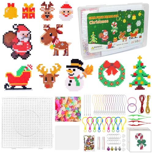 Giugio Strykpärlor, julplattor, pluggpärlset, med strykpärlor, mallar och strykpapper, tillbehör, gran snöflingor mönster för pyssel för barn, gåva, juldekoration