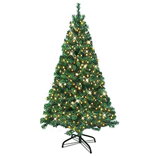 GarveeLife Konstgjord julgran med belysning, 180 cm hög gran med 1 200 grenar och 250 lysdioder, lampor, PVC, julgranar med metallstativ för hem, juldekoration, A