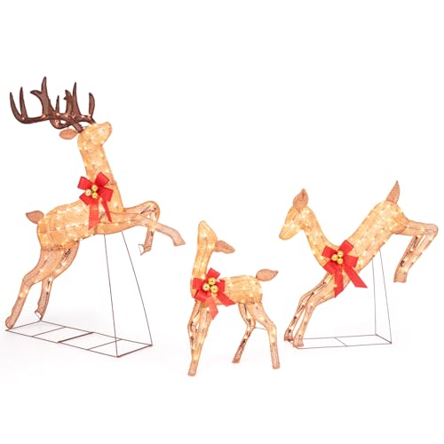Fantaskk 3-delad LED-ren familj, XXL juldekoration med 255 varma vita lampor, upplyst jultröja, julbelysning för utomhusbruk, inomhusdekoration