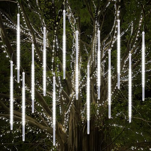 Vikdio julbelysning utomhus, Meteordusch lampor 16 spiralrör 50 cm 864 lysdioder 5,25 m upplyst längd, vattentät snöfall istappar för utomhus juldekoration fest träd fönster (vit)