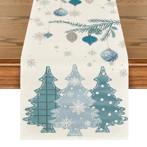 Artoid mode blå träd juldekoration jul bordslöpare, vinter jul köksbord dekoration inomhus semester fest dekor 40 x 100 cm