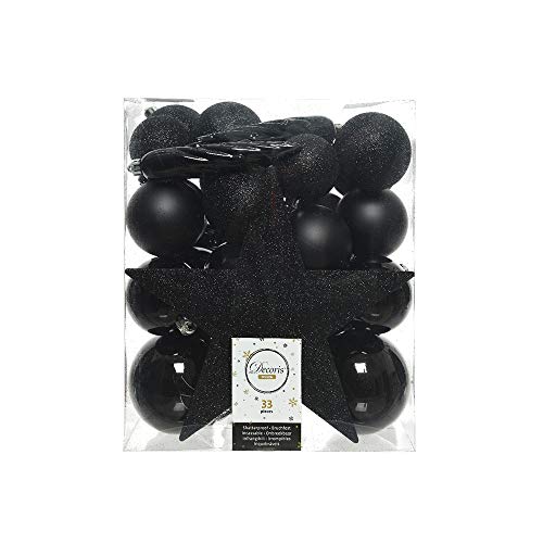 Tillbehörslåda med 33 delar för svart träd, perfekt för juldekoration och festivalrumsanpassning.