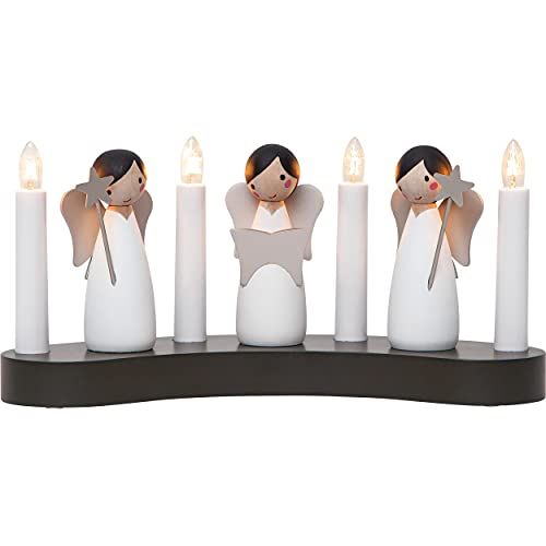Eglo ljusbåge, jul med 4 glödlampor, fönsterljuskrona med upplysta julfigurer av trä, ängel, ljusbåge med kabel, E10, varmvit, 310 x 80 x 150 mm