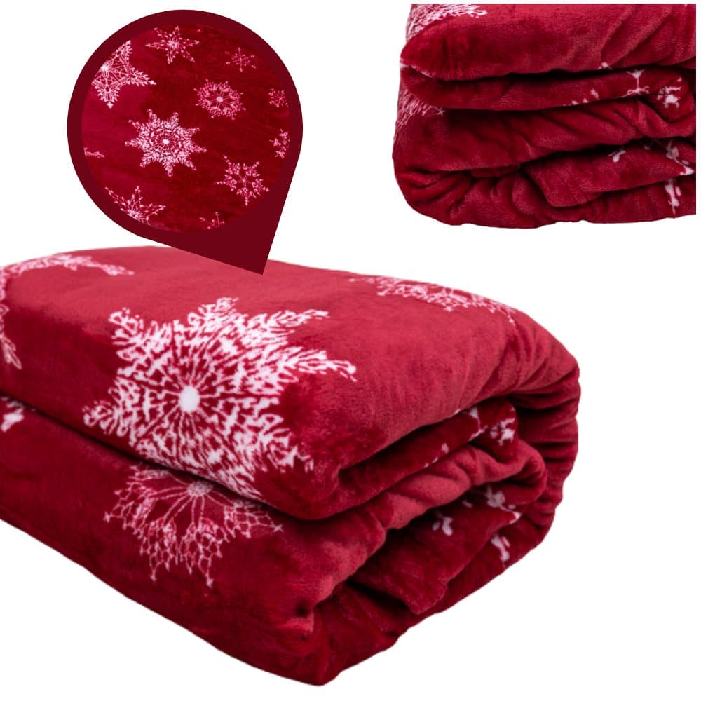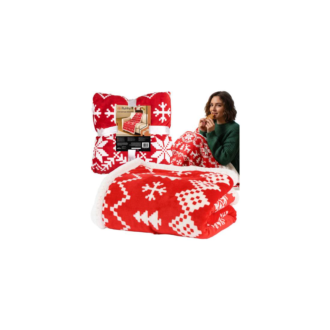 Julfilt röd ren sängfilt fluffig fleece sängöverkast för bäddsoffa (130 x 150 cm)