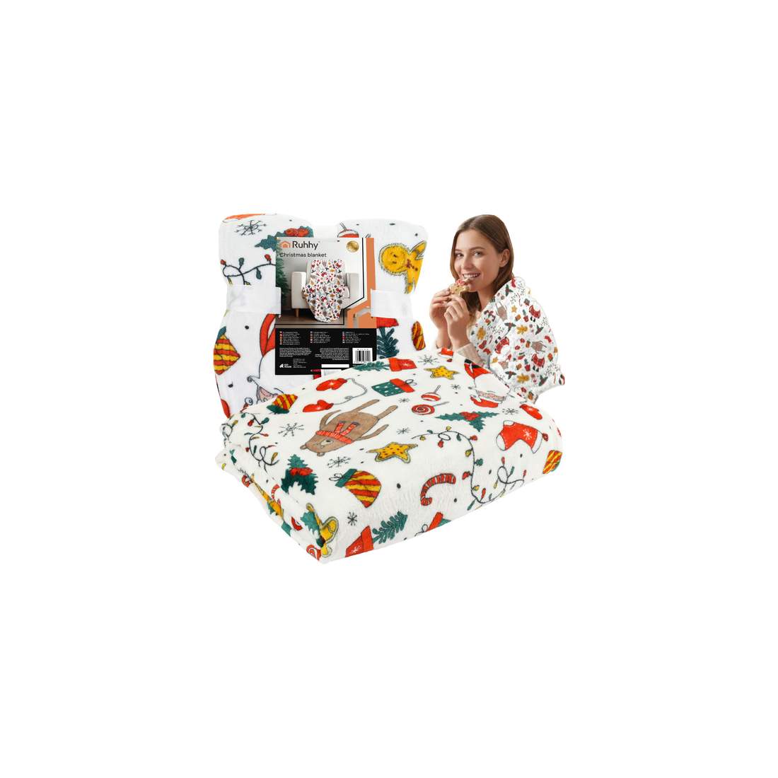 Fusion – jul teddy fleece överkast (120 x 150 cm) – jul godishast – mjuk fleece beröring – vit julfilt – fleecefilt – gåvor – jultomtar sofföverkast