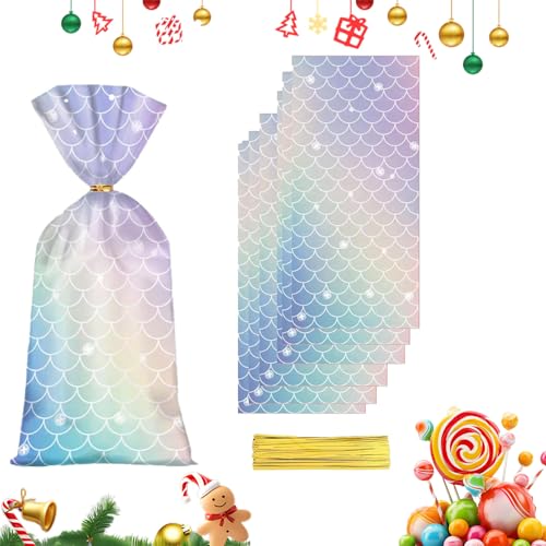 Eterspr 100 st sjöjungfruformade godispåsar, sjöjungfru cellofanpåsar, jul kakpåsar, lämplig för förvaring av julgodis, bröllopsfest