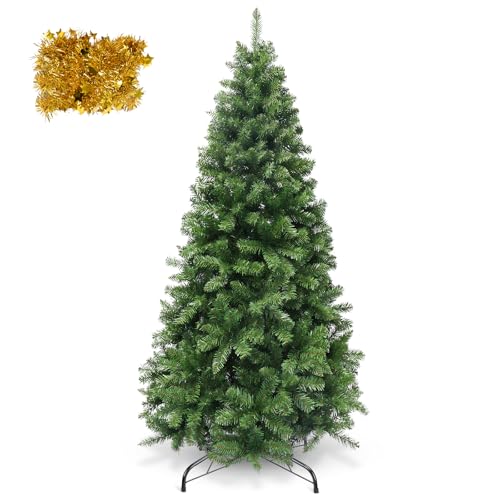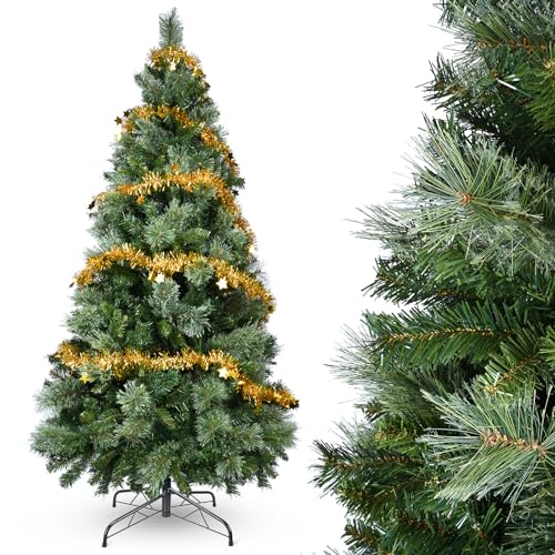 YEAUPE PRO 170 cm konstgjord julgran med 800 spetsar, PVC + PE | Robust metallbas med 9 m dekorativt band ingår | För inomhus- och utomhusbruk