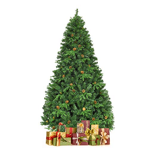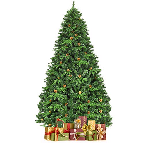COSTWAY 210/225/240 cm LED konstgjord julgran, julgran med metallstativ, kottar, konstgjord julgran idealisk för hem, kontor, butiker och hotell (240 cm)