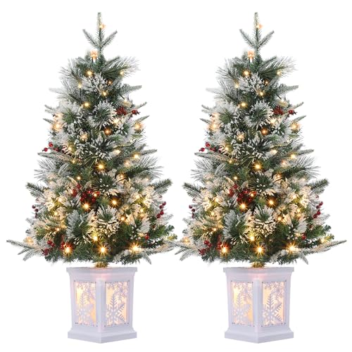Garvee Konstgjord julgran 90 cm set med 2, 78 LED-lampor, realistiska grenar, röda bär, snöflinga, konstträd för juldekoration