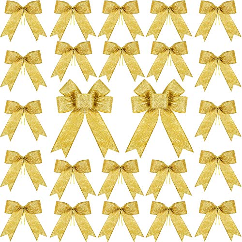 WILLBOND 24 stycken jul glitter rosett julgran rosetter festdekorationer jul dekor krans ornament (guld)