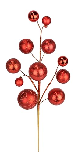 Konstgjord dekorativ gren, röd, 47 cm, juldekoration med glänsande, glittrande kulor, julbukett, julgran, smycken, festlig gren, dekoration, gren, guldkulor, jularrangemang, bordsdekoration