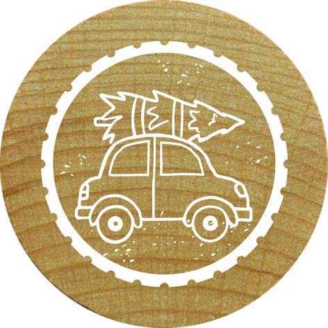 Woodies bilstämpel med julgran, trä, 3,4 x 3,4 x 3,5 cm
