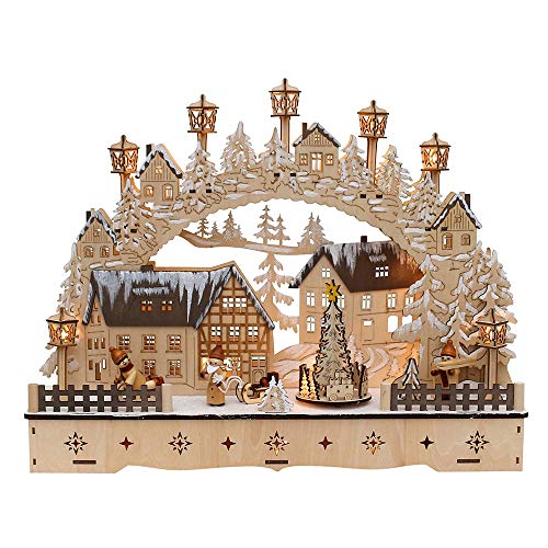 Dekohelden24 LED trä ljusbåge med rörlig julgran, motiv: lyktbarn, L/B/H ca 45 x 12 x 35 cm, för batteri- eller adapterdrift, 35 cm