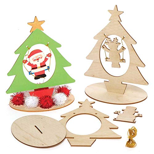 Baker Ross AX428 Julgran trä karaktär konstkit - paket med 4, trähantverkskit för barn festliga konst- och hantverksaktiviteter