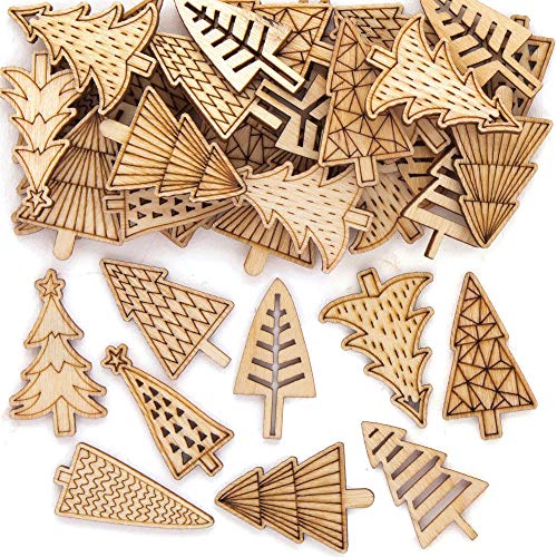 Baker Ross AX317 Träformade julgransdekorationer - 45-pack, tillbehör för julkort, perfekt för konst- och hantverksprojekt för barn