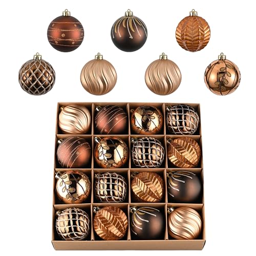 Valery Madelyn julprydnadsset, 16 karat brons koppar och guld okrossbara julgransdekorationer bollprydnader bulk, 8,5 cm eleganta hängande prydnader för julgranar dekor