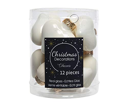 Julgransdekorationer hjärtan glas 4 cm x 12 stycken hängen elfenben