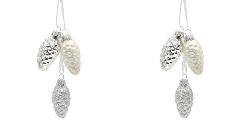 Dekohelden24 Lauschaer Julgransdekorationer, set om 2 med 3 minikottar, textilband, glans, matt, glittrande, 3 silver, 6 cm