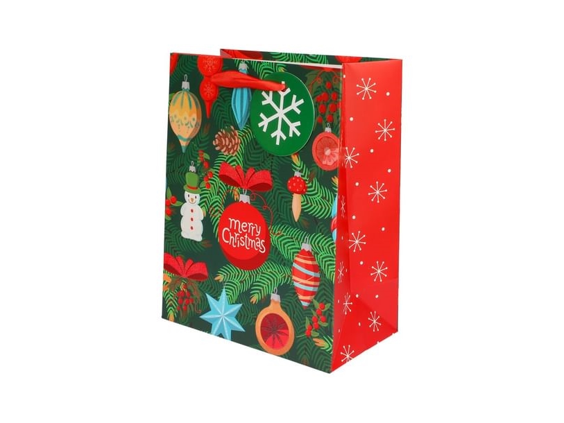 Presentpåse Grön Med Julgransdekorationer