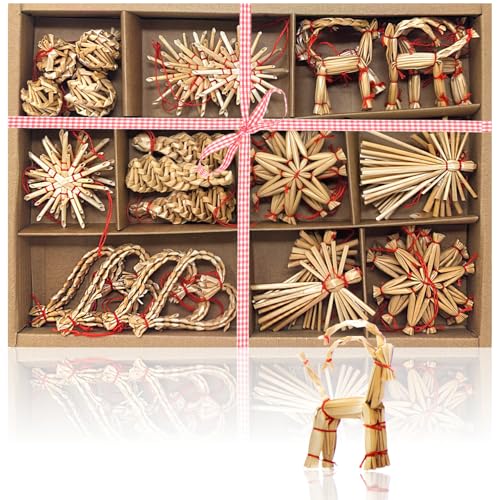 COM-FOUR® 35x halmstjärnor i en mixuppsättning - Julgransdekorationer - Halmhänge till julgranen - Naturliga julgranhängen - Julpynt (35 stycken - Set1)