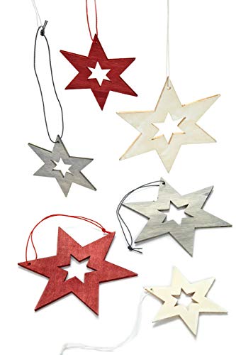 HEITMANN DECO Julgransdekorationer av trä – stjärnor att hänga upp – julgransprydnad, juldekoration – 24 delar röd, grå, natur