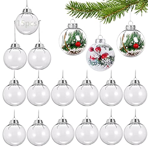 15 stycken klara julgranskulor, 6 cm julgranskulor, gör-det-själv-kulor, akrylkulor, påfyllningsbar plastkula, runda julgranskulor, juldekoration för julgransdekorationer, festdekorationer
