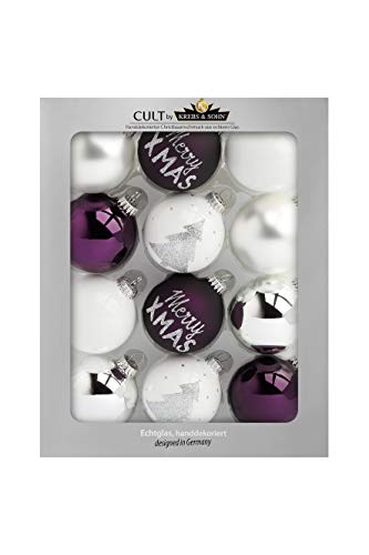KREBS & SOHN Uppsättning av 12 julbollar av glas – julgransdekorationer julgranskulor juldekoration – vit, lila, silver, (8,0 cm)