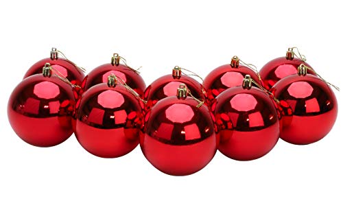 Toyland 10 extra stora 100 mm färgade julgranskulor – julgransdekorationer (röd)