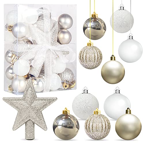 Valery Madelyn julprydnadsset, 30 karat vitt och guld okrossbart julgransdekorationer bollprydnader bulk, 6 cm eleganta hängande prydnader för julgranar semesterdekor