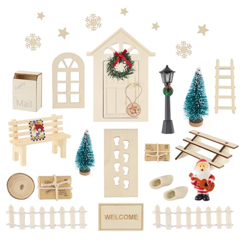 Tomtedörrsset med 29 tomtedörrar, juldekoration älvdörr för barn, tomtehus, julgransgirlang, matta, trädgårdsmöbler