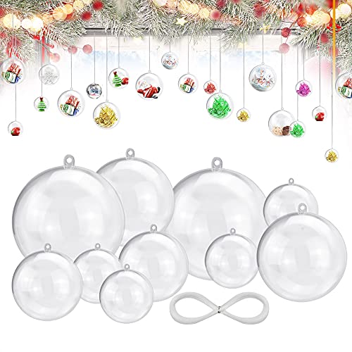 STCRERAG Julklara julgranskulor, fyllbara julgranskulor, genomskinliga julbollar, 25 st julakrylbollar, julgranskulor med 4 storlekar (4/6/8/10 cm) för gör-det-själv julgran bröllopsfest dekor