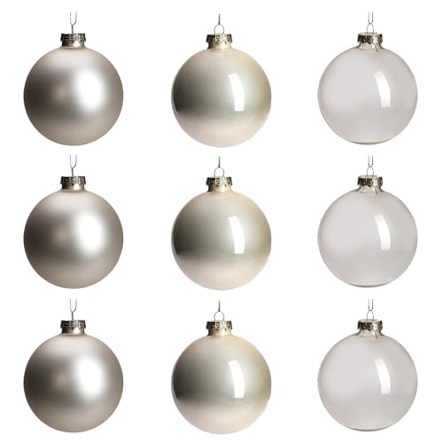 Uppsättning av 16 julgranskulor, vita glas, 8 cm – matt och glänsande, festlig juldekoration