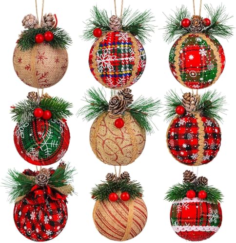 KAHEIGN 9 st julgranskulor, julgranskulor, 8 cm stora julgranskulor av säckväv, okrossbara julgranskulor att hänga upp, för julgran, hem, julfestdekoration