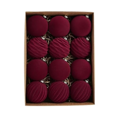 Julgranskulor i sammet – 12 stycken, 8 cm, okrossbara, flockade julgransprydnader, set med julgranskulor, hängande dekoration för julfester, för julgranen, hem- och kontorsdekoration