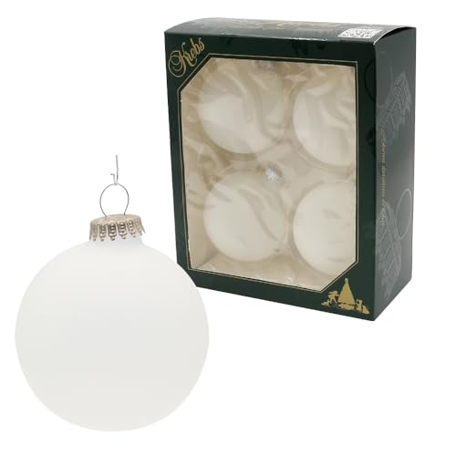 Dekorhjälten24 Lauschaer julgransprydnad – isiga julgranskulor, snö, set om 4 kulor, bullerkulor, uni matt, 8 cm, med silverkrona + 50 snabbhängare i silver.