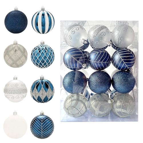 48 st kungsblå och silver julkulor prydnader för julgran/judisk Hanukkah-dekorationer – 10 stilar julgranskulor prydnader – okrossbara julgransdekorationer hängande boll