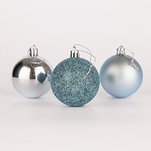 HEITMANN DECO Set om 49 julgranskulor sortiment – juldekorationer blå ljusblå silver att hänga upp – plastkula sortiment