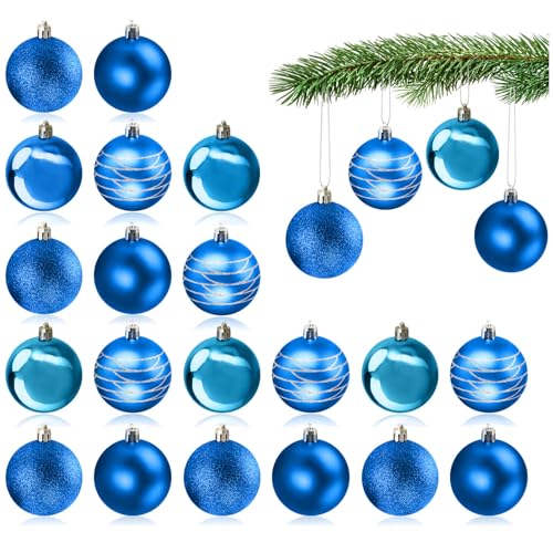 Belle Vous 50-pack julgranskulor, blandade storlekar, glittrande blå julgranskulor med julgransstjärna, hängande ornament för juldekorationer och högtidsfester, inomhus-och utomhusdekorationer