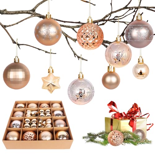 Figarge Julgranskulor i plast, 44 stycken julgranskulor, rosa och blå, julkulor, julgransprydnad för festivaldekoration, dörrkrans, julgransprydnad (champagneguld)
