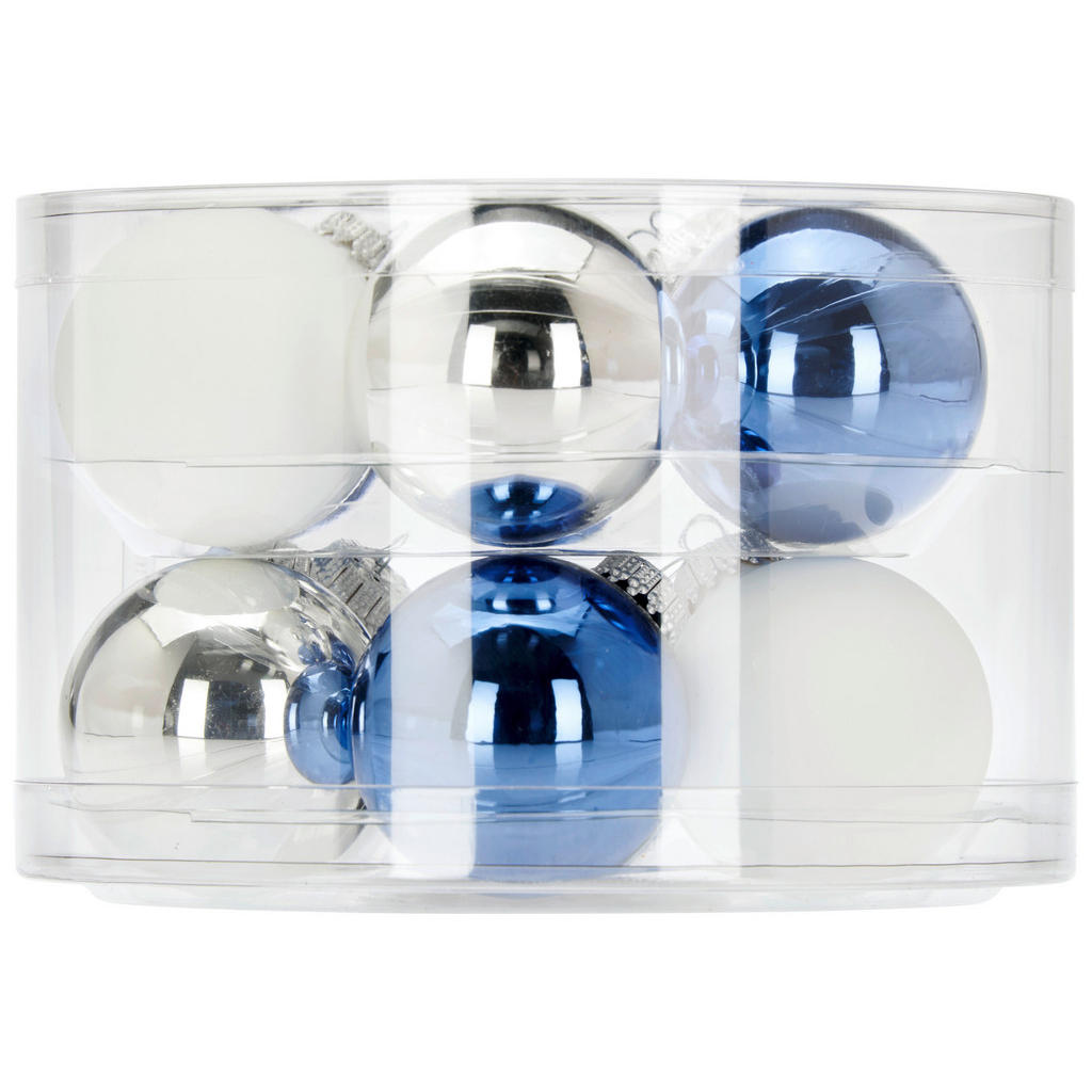 WeRChristmas Okrossbara lyxiga julgranskulor, plast, blå/vit, 48 stycken